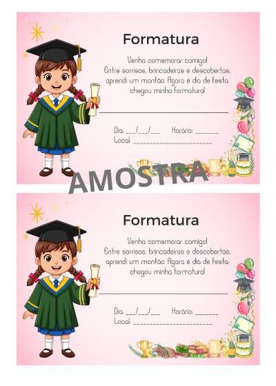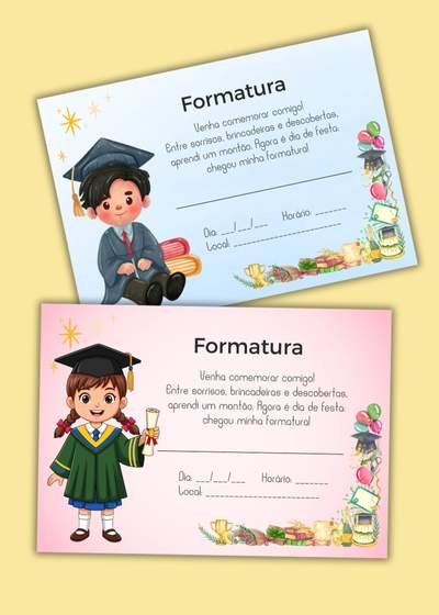 🎨 Modelos variados para combinar com qualquer tema de formatura: coloridos, delicados, modernos, fofos e totalmente adaptáveis para sua escola.