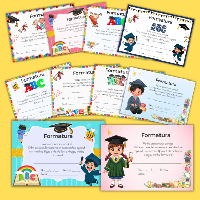 🎓 10 Modelos de Convites de Formatura ABC – Editáveis e Prontos para Usar!