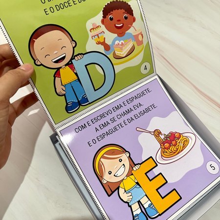 Cada letra é apresentada junto a personagens, pequenas histórias e ilustrações coloridas, despertando a curiosidade e o interesse dos pequenos pela linguagem escrita e oral.