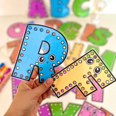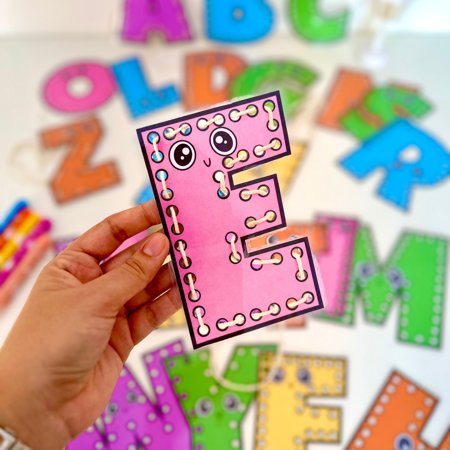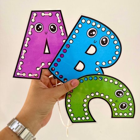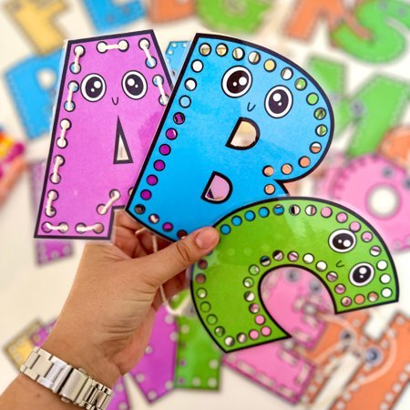 Um recurso lúdico e educativo com todas as letras do alfabeto em placas de alinhavo, perfeito para desenvolver a coordenação motora fina e trabalhar o reconhecimento das letras de forma interativa! 🌈✨