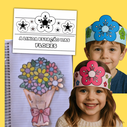 ✨ Assim, cada criança poderá montar o buquê 3D e também se divertir usando a coroa de flores, celebrando a linda estação das flores de forma lúdica e memorável!