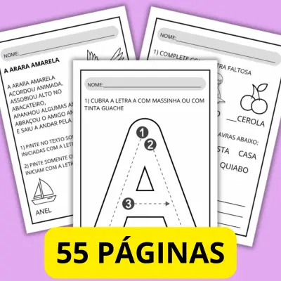 55 páginas com atividades com as vogais em pdf prontas para imprimir.