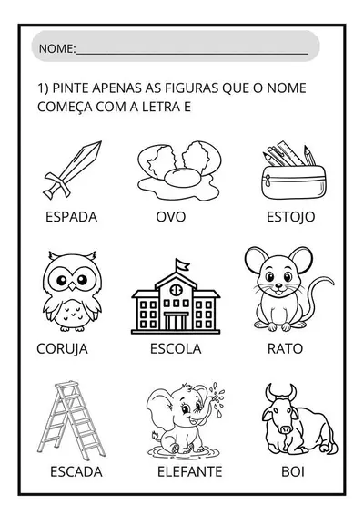 – Identificação da letra E como inicial de figuras
