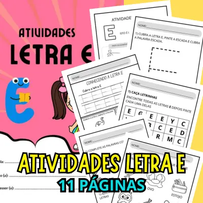Este material contém 11 atividades prontas para trabalhar a letra E de forma prática e pedagógica.