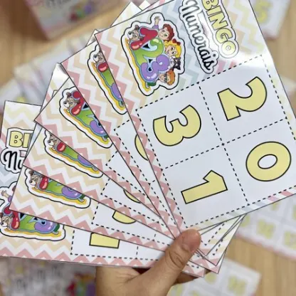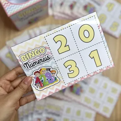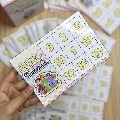 O bingo é um jogo bastante conhecido e que traz muitos benefícios 🎉. É um ótimo exercício mental para as crianças, ajudando a desenvolver a atenção 👀 e a coordenação motora ✋, pois o jogador precisa ouvir o número narrado e preencher a cartela rapidamente, além de trabalhar o conhecimento dos numerais 🔢.