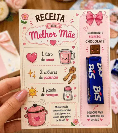 💖 Cartão Dia das Mães – Receita da Melhor Mãe + Espaço para Chocolate 🍫