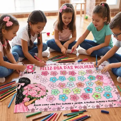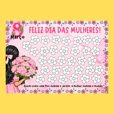 Neste cartaz especial, cada criança será convidada a colorir uma flor, representando o carinho, o respeito e a admiração por todas as mulheres. Aos poucos, cada flor pintada irá formar um lindo jardim coletivo, mostrando que quando todos colaboram, o resultado fica ainda mais bonito.