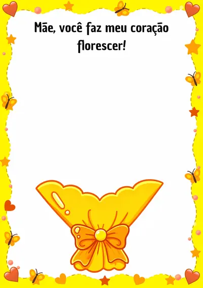 💬 No centro, a frase “Mãe, você faz meu coração florescer!” aparece em destaque.