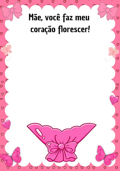 🎀 Cartaz coletivo com bordas em tons de rosa, decorado com corações, laços e borboletas, criando uma estética delicada e encantadora.