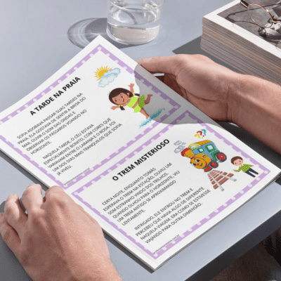 – 15 páginas contendo 30 fichas de leitura com pequenos textos em caixa alta pronto para impressão