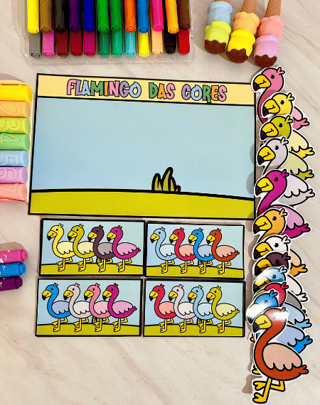 🦩 Flamingo das Cores estimula atenção, percepção e aprendizagem sensorial!