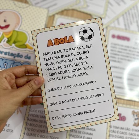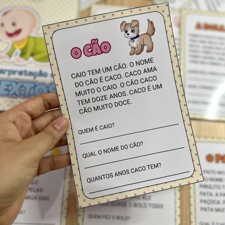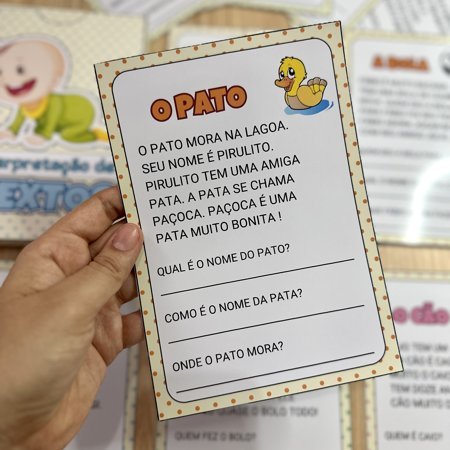 O arquivo Interpretação de Textos inclui 12 textos curtos, cada um acompanhado de 3 perguntas para interpretação 🧠📝. Um recurso ideal para crianças em fase de alfabetização, que já iniciaram a leitura, mas ainda enfrentam desafios com a compreensão leitora.