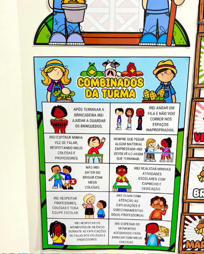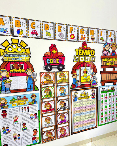 Este kit completo foi desenvolvido para transformar sua sala de aula com uma decoração alegre, educativa e temática de fazendinha, proporcionando um ambiente acolhedor e estimulante para as crianças.