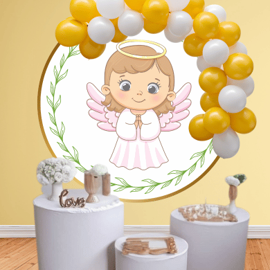 As ilustrações de anjinha em estilo aquarela deixam o cenário suave, elegante e totalmente pronto para usar em batizados, bênçãos, celebrações religiosas e ensaios fotográficos. Basta baixar, imprimir e montar a decoração do jeitinho que você sonhou.