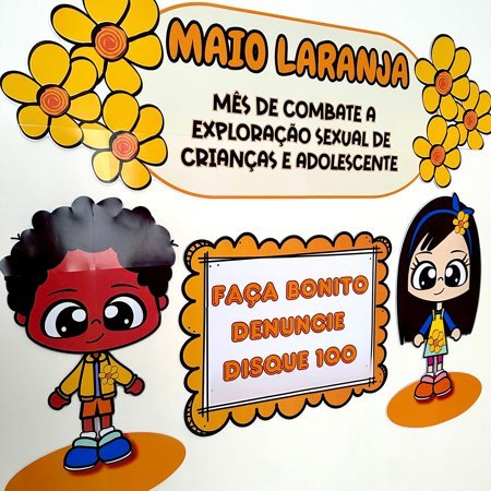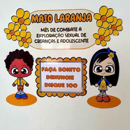 Leve para sua sala de aula um painel cheio de significado, amor e conscientização! Este painel foi desenvolvido especialmente para trabalhar o tema do Maio Laranja com as crianças da educação infantil, de maneira lúdica, acolhedora e visualmente atrativa.