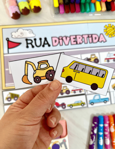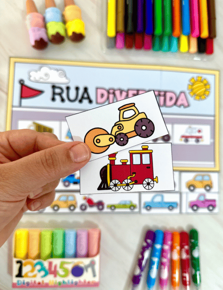 A proposta utiliza figuras ilustrativas de veículos 🚙🚌🚓, permitindo que as crianças aprendam sobre regras de trânsito, segurança 🚸 e diferentes tipos de transporte, de maneira visual, interativa e envolvente. Além de promover a compreensão do ambiente urbano 🏙️, o material estimula a coordenação motora fina ✋, a concentração 🧠 e o raciocínio lógico 💡, tornando o aprendizado mais significativo.